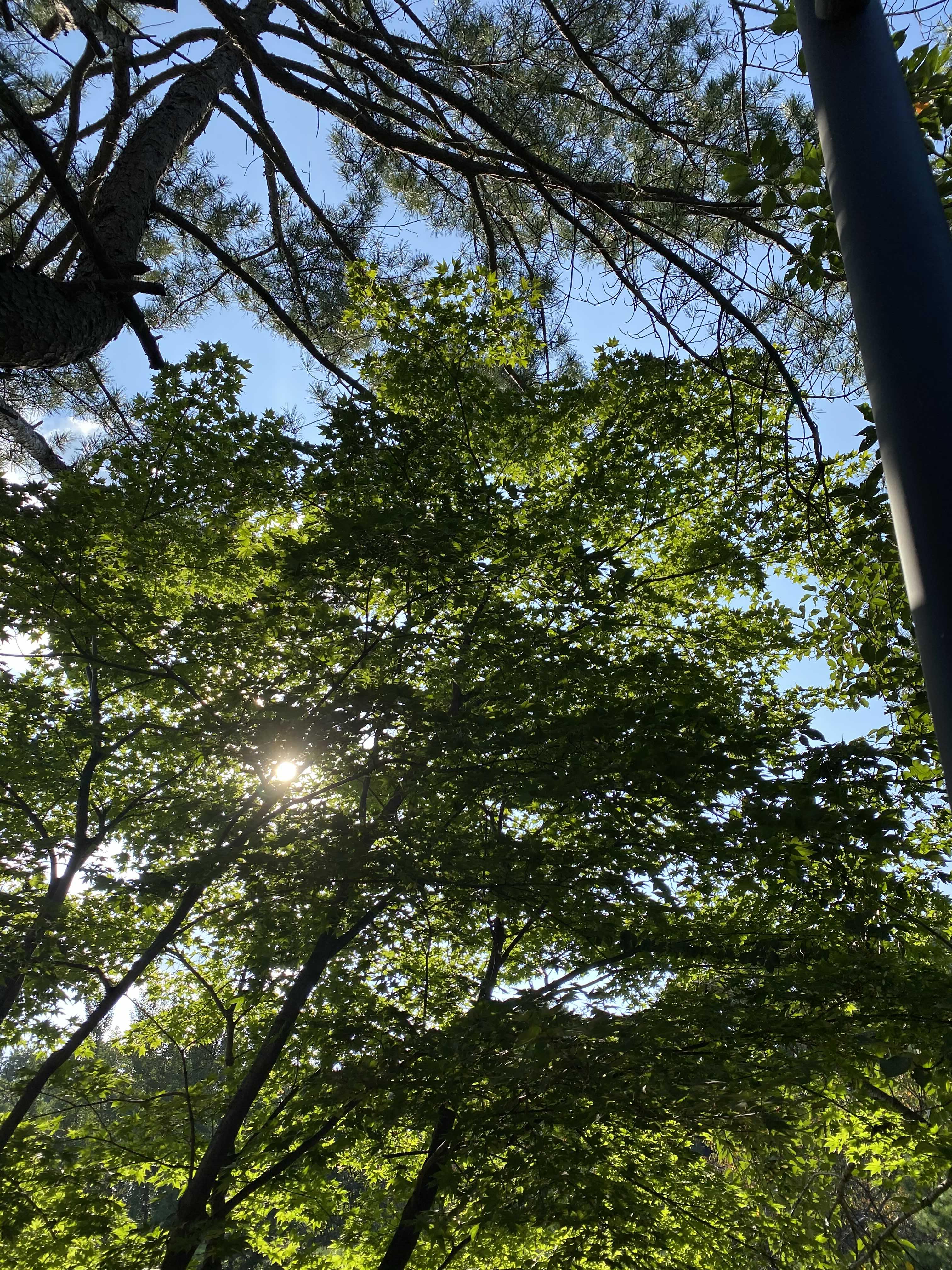 나무가 무성해서 시원한 바람이 솔솔 불어요.