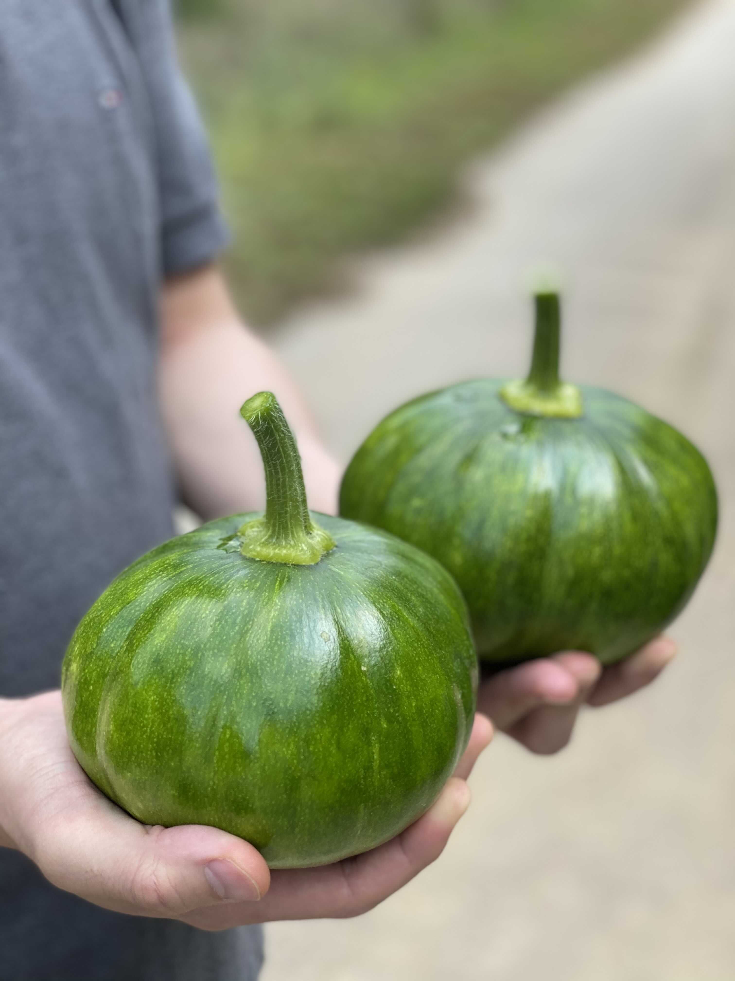 다 큰 싱싱한 호박 두 개 땄어요.