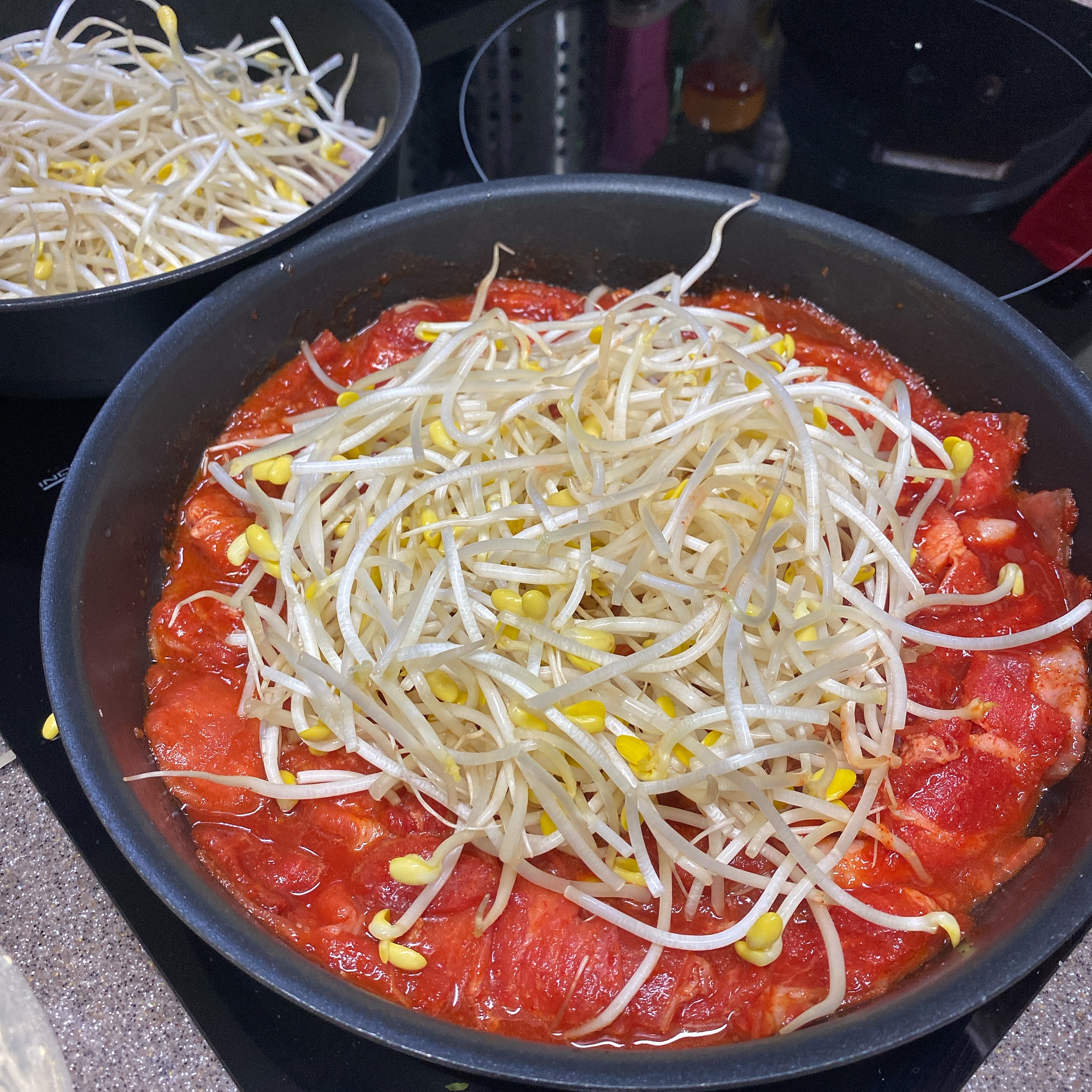 고기랑 콩나물을 다 먹을쯤 그 양념에